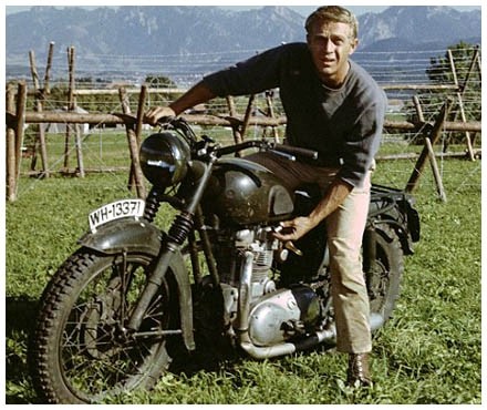 Aunque se le conoce por su faceta de actor, lo que realmente amaba eran los deportes de motor. En los años sesenta los motoristas eran mirados con desdén. Eran rebeldes a los que la sociedad temía y despreciaba. Pero Steve McQueen consiguió cambiar eso implicándose personalmente, tanto en el plano deportivo como en el económico. Profesaba un amor incondicional por las motocicletas, de las que llegó a poseer más de cien. Concretamente guardaba un grato recuerdo de su primera moto, una Indian Chief. En una ocasión recordó: “Estaba tan orgulloso de aquella Indian que fui con ella a recoger a la chica con la que me había citado. Ella me preguntó despectivamente si yo pretendía que se montara en ella, a lo que repuse que por supuesto. Así que la chica se fue y me quedé con la moto”.