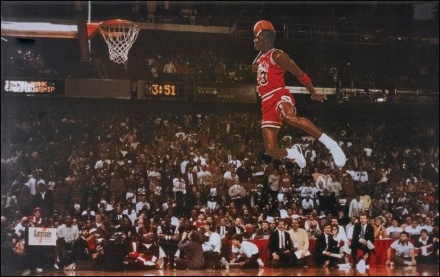 -Trayectoria baloncestística: ¿Qué se puede decir a estas alturas de uno de los mejores jugadores de baloncesto de la historia? La verdad, sus números y títulos hablan por sí solos… En sus inicios, Jordan fue bautizado como “el hijo del viento” dada su enorme facilidad para mantenerse en el aire, algo que quedó patente en sus espectaculares mates en el Concurso celebrado en el año 1988, el mejor de la historia, y en el que se coronó campeón tras vencer también a un fabuloso Dominique Wilkins.