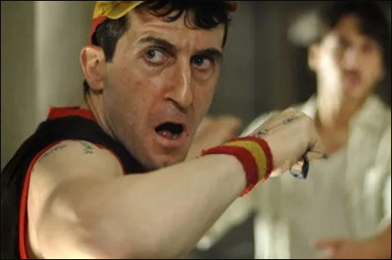 -R: “En el guión estaba, pero Luis es un genio. Por entonces no era muy conocido y nos llegó con una propuesta muy extrema…. Estábamos en una cárcel real en Zamora, los presos en papeles pequeños son reos de tercer grado y conseguimos que nos los cedieran. Y, claro, en la primera secuencia que llega Luis, no dije a nadie que él era actor… entonces los presos que eran extras se me acercaron y dijeron ¿de dónde ha salido este? ¿de qué cárcel? Y me dije, esto funciona”.