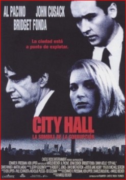 Y para el final de «La sombra del traductor» he decido dejar una curiosa y “original” variante a la hora de aplicar las ya famosas palabras de “La sombra de/l”. Se trata de “dar el pego” poniendo delante de ellas el título en inglés y luego añadir lo de “La sombra de/l”. A modo de ejemplo puedo citar la película de 1996 dirigida por Harold Becker y titulada en inglés como ‘City Hall’. Aquí fue rebautizada como… ‘City Hall, la sombra de la corrupción’. La verdad es que dan ganas de partirse de risa. En esta película el mítico Al Pacino daba vida al alcalde John Pappas que gobernaba en NY haciendo y deshaciendo a su antojo.