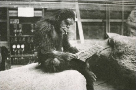 Seguro que muchos de ustedes recordarán a aquellos monos de comienzo del film a los que se les aparecía el misteriosamente irritante “monolito”. Bien, está claro que el “monolito” no sólo les enseñó a luchar por lo suyo, sino que también les dotó de inteligencia para leer el periódico… e incluso les acercó al peligroso vicio humano de fumar. Para muestra esta foto…