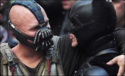 Ahora bien, en realidad, tanto Batman como Bane no eran enemigos mortales, más bien todo lo contrario. ¡Eran un buen par de colegas! Aquí los podéis ver hermanados y abrazados (ver el detalle de como Bane “le pasa la mano por el lomo” a Batman) en esta foto clasificada como “alto secreto” y filtrada desde el propio despacho del Comisionado Gordon.