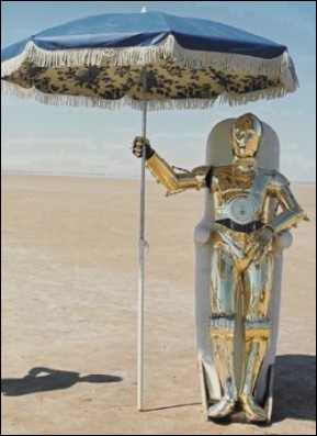 Una de las localizaciones del film fue Túnez. Hasta allí se trasladó Lucas y cia. para rodar las escenas que tenían lugar en la película en el imaginario desierto de Tatooine. El rodaje bajo el sol del desierto fue tan abrasador que hasta el mismísimo C3PO tuvo que usar sombrilla…