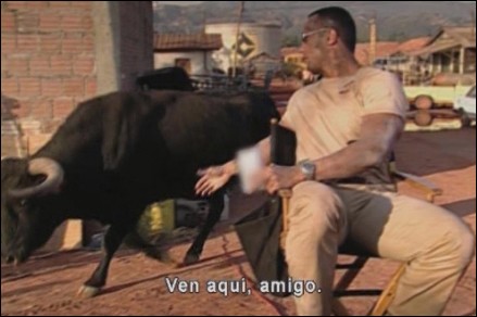 En la parte final de la película se montaba una buena con la suelta de toros y vacas incluida que arrasaban con todo… Pero al coloso californiano estos poderosos animales parece que no le intimidaban ni dentro ni fuera de la pantalla. Incluso en las entrevistas y “making of” del film se le veía con ganas de llevarse a alguno de mascota para casa…