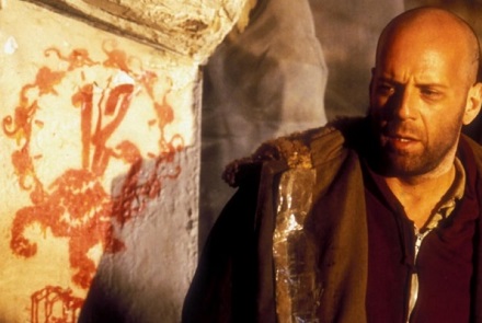 En la triste ambientación que acabó de resaltar en el párrafo anterior influyó seguramente el bajo coste del film, apenas 29 millones de $. Esto provocó que los diseñadores y demás artistas desarrollaran al máximo sus capacidades e imaginación… y esto, al final, devino positivamente en la película dándole ese estilo tan suyo. El propio Bruce Willis también dio lo mejor de sí mismo aceptando trabajar gratis solo para hacerlo bajo las órdenes de Terry Gilliam. Una vez estrenada, el 29 de diciembre de 1995, ‘12 monos’ fue un éxito para la Universal recaudando casi 170 millones de $ a nivel mundial. De ahí se sacó el dinero para pagar el sueldo de Willis. Y, como curiosidad, en 2015 se estrenó una serie homónima en la cadena Syfy.