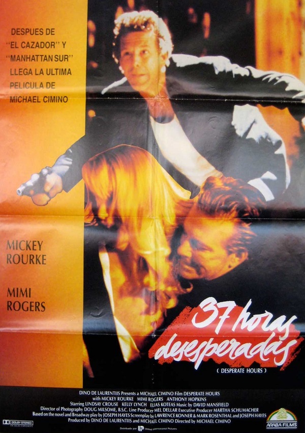 Bajo el amparo de Dino De Laurentiis, Michael Cimino ansiaba regresar a dirigir un film en EEUU tras la contundente ‘Manhattan Sur’ (1985). Cimino esperaba que la nueva película le supusiera un cierto respaldo de taquilla para, nuevamente, afrontar empresas mayores y personales. Y así llegó ‘37 horas desesperadas’. Estamos ante una actualización de la conocida obra de Joseph Hayes. Una obra que ya fuera llevada por primera vez a la gran pantalla en 1955 con William Wyler en la dirección y con un ya ajado Humphrey Bogart como protagonista.