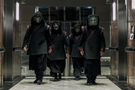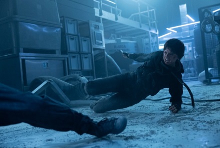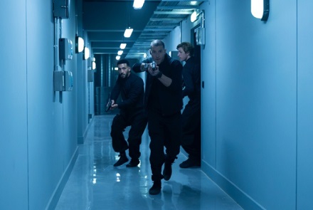 En el apartado de la acción ocurre lo mismo que con la dirección y con el guión. Me refiero a que ninguna set-piece sorprende y todo se limita a revisitar lugares comunes. Por consiguiente, encontraremos en este film las típicas persecuciones por el edificio, emboscadas, intercambio de disparos, alguna explosión y combates. De todo esto me quedaría con las peleas en las que se ve envuelta Joey (Daisy Ridley) que son bastante duras… aunque breves. No obstante, y aprovechando el hecho de que la protagonista es una limpia-ventanas, se incluye la novedad de rodar algunas set-pieces en el andamio exterior. Aunque tampoco es que se le saque a esto mucho partido. Además, la acción como tal no se desata hasta que Joey logra entrar al interior del edificio… y esto sucede ya ciertamente avanzado el metraje.