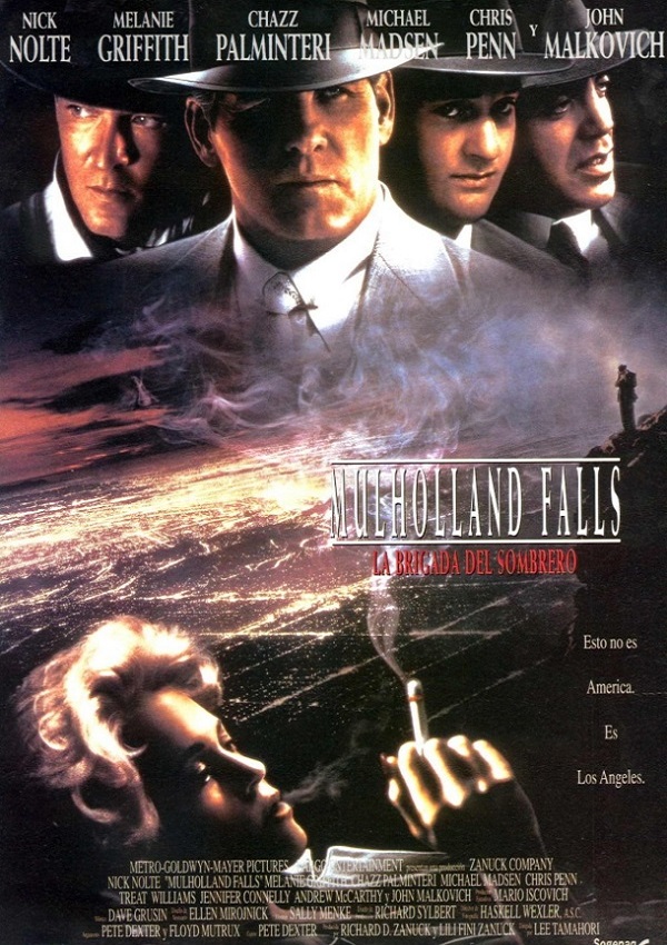 Realmente, ¿Estamos ante un largometraje injustamente olvidado? Sinceramente creo que sí. Y lo pienso así porque ‘Mulholland Falls’ es una muestra de cine negro plenamente efectiva. La película resulta contundente, con personajes muy bien dibujados e interpretaciones más que interesantes dentro de un reparto inacabable de actores y actrices. Asimismo, la época está precisamente recreada, el guión logra mantener cierta intriga en cuanto al MacGuffin del mismo y, además, incorpora una serie de sentencias y secuencias a reivindicar. La trama recoge varios aspectos importantes tales como: un misterioso asesinato, corrupción, abusos de poder, conspiraciones gubernamentales, el paso a la industrialización, gánsteres de renombre, polis duros, federales trajeados y encantados de conocerse, y femme fatales. Todo esto está presente y nada luce falso o acartonado. La tensión y el suspense se logran mantener en buenas dosis hasta el final.