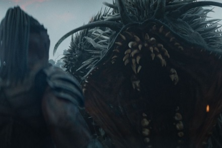 El resto de la historia vendría a replicar la temática vista en ‘La presa’. Eso sí, cambiando personajes y entornos. Con esto me refiero a que en ‘Badlands’ también tenemos a un joven, en este caso el depredador llamado Dek, que es rechazado para cazar y que él se empeña en demostrar su valía. Por ello, el film nos invita a un viaje iniciático en el que acompañaremos a Dek en busca de su destino y formación como cazador. Para ello se propondrá cazar a una criatura temida hasta por su propio padre. Y es a lo largo de ese viaje en el que Dek irá experimentando todos los cambios anteriormente referidos. Como vemos, es prácticamente lo mismo que sucedía con Naru en ‘La presa’.
