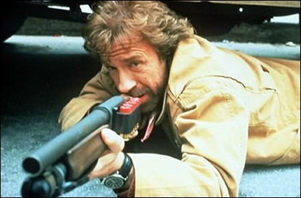 1985 fue un año sumamente prolífico para el actor con ‘Desaparecido en combate 2’ (Lance Hool) y embarcándose sin apenas descanso en ‘Código de silencio’, un thriller policíaco puramente ochentero dirigido por Andrew Davis. Curiosamente el actor en quien se había pensado inicialmente era Clint Eastwood, pero al final el papel recayó en manos de Chuck que recibió excelentes críticas: «Fue probablemente la primera película donde los críticos realmente me alabaron. Dijeron que era el nuevo John Wayne». Hay que resaltar que los ochenta fueron la época de la Guerra Fría y estaban muy de moda las películas con villanos rusos. Quizás por eso nuestro amigo probó suerte escribiendo el guión de ‘Invasión USA’ (Joseph Zito), inspirándose en un relato del Reader’s Digest que, a la postre, resultó ser una de sus películas más emblemáticas.