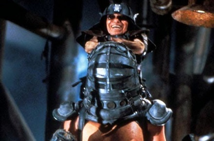 Precisamente La Cúpula del Trueno es el escenario de uno de los momentos más memorables de la película. Y es que además de Max y Tía Ama hay dos personajes carismáticos que merecen una especial atención. Me refiero a Maestro y Golpeador. El primero es un enano experto en mecánica que controla la producción de metano debido a sus conocimientos técnicos. Gracias a ellos chantajea constantemente a Tía Ama con embargarla y quitarle la energía. Está interpretado por Angelo Rossitto. Por su parte, Golpeador corrió a cargo de Paul Larsson. Su personaje es una mole de músculos que, a la postre, resulta ser un retrasado mental con una total intolerancia a los silbatos. La idea de unir a semejantes engendros en uno solo es surrealista pero es un acierto total porque esa unión de inteligencia y fuerza bruta da como resultado un personaje bizarro y grotesco.