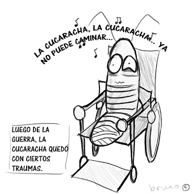 -Hace 2 o 3 días me levanté de madrugada a la cocina y allí al lado de la puerta había una cucaracha de respetable tamaño. Logré cazarla con un clinex y la tiré por el retrete antes de aplastarla con la mano.